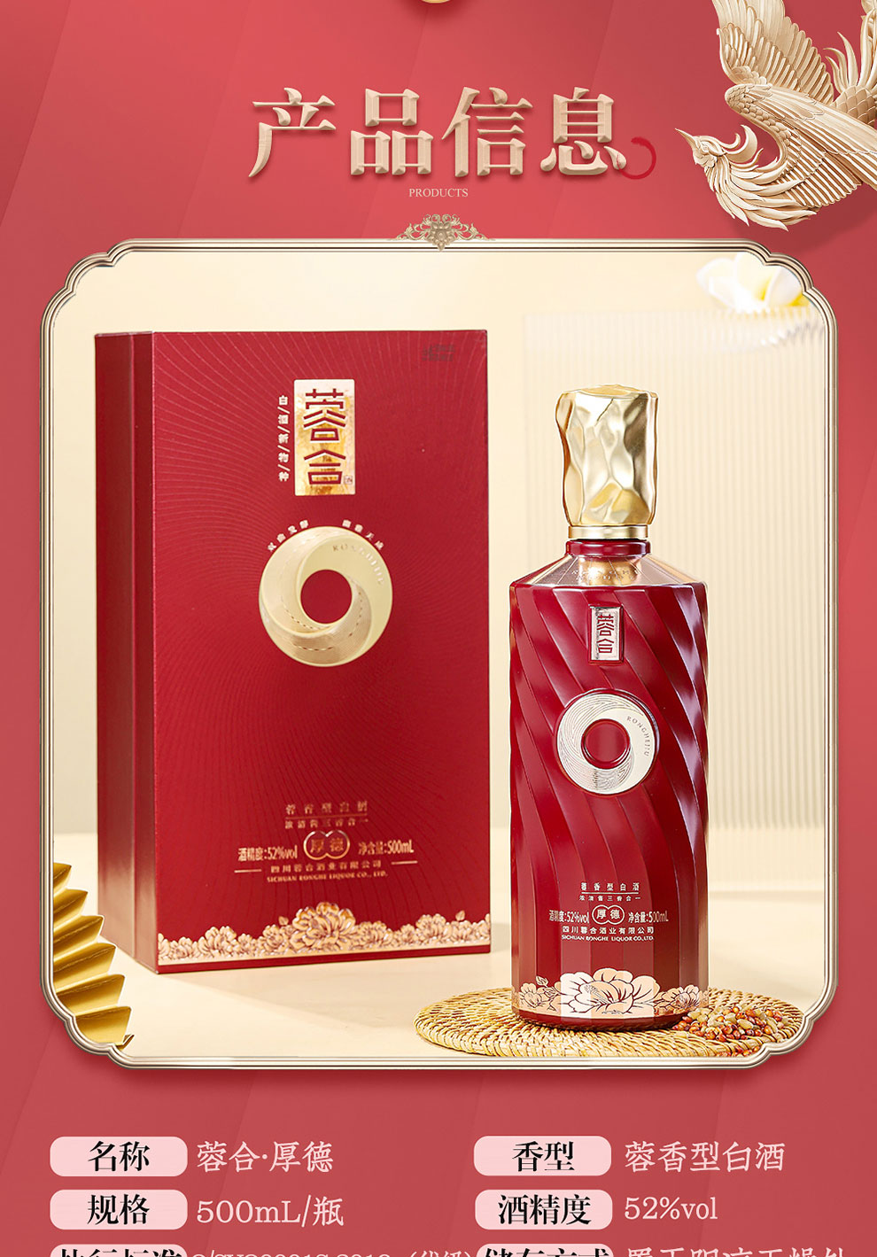 • 产品香型:蓉香型白酒