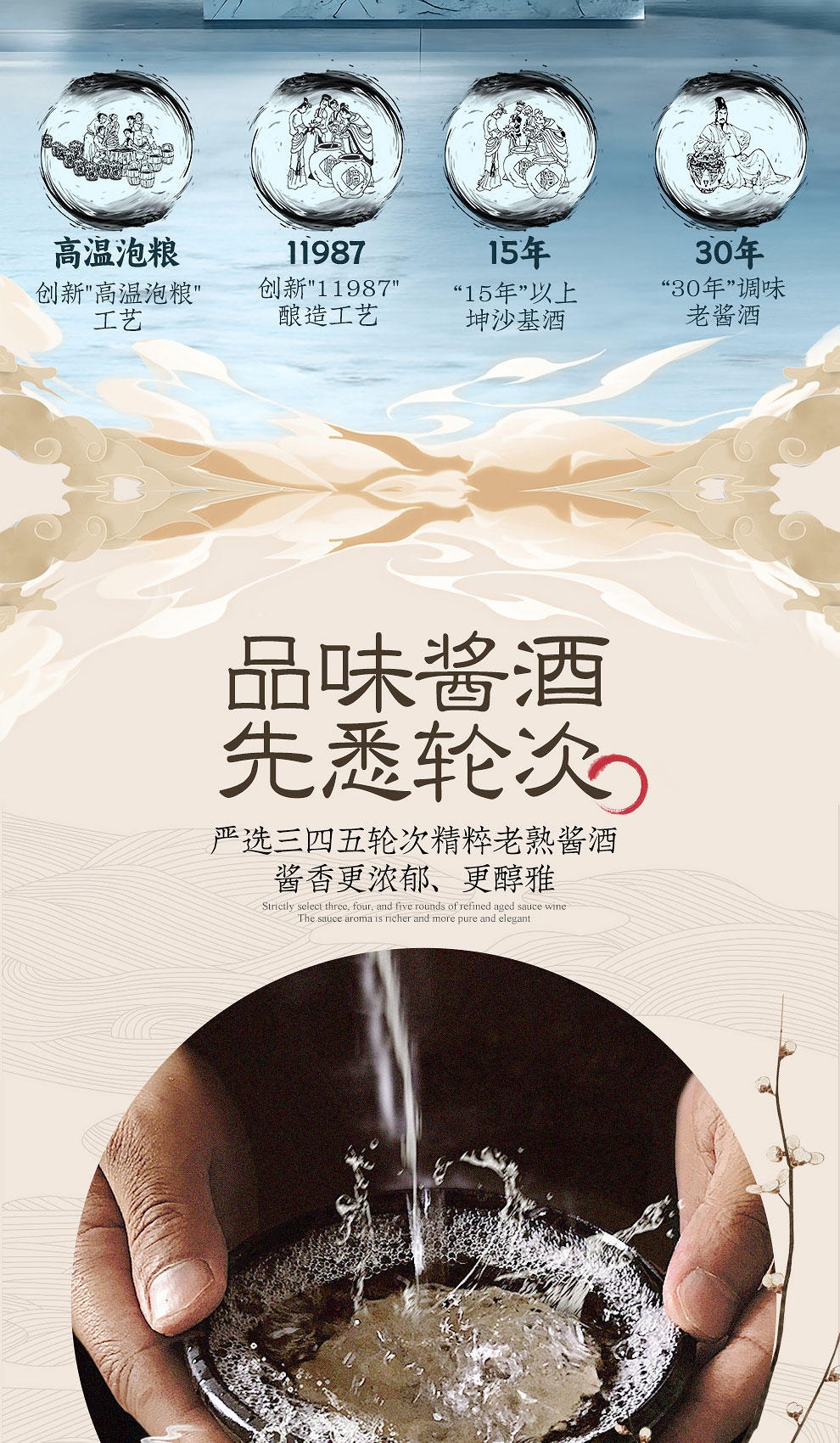 三十年调味老酱酒,赋予酒体更丰富的口感层次。